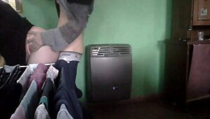 latina milf couple fucking in kitchen by heater