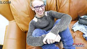 Teen girl bathes nude, caresses tits in casting interview