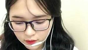korean nerd rides cock begging for creampie in tight pussy