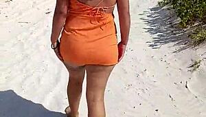 Mexican Whore Flashes Thong and Tits on Public Beach