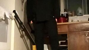 The interracial police officer in uniform plays hot music while hardcore fucking