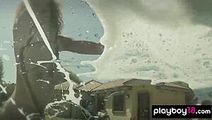 Bubble-Soaked Ebony Milf Misty Stone Washes Car Nude With Skinny Black Teens
