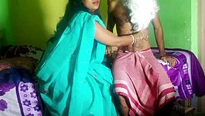 Lovely lesbian couple breaks in new dildo sex toy passionately.