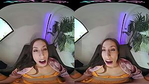Sexy brunette in stockings horny for your vr cock fuck now