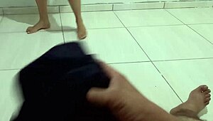 Гледай ме как дразня мокрото си путки до баба. Тя гледа ТВ, докато пръскам.