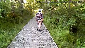 oh man... hairy chubby milf flashes thru see-thru dress outside