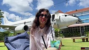 Langhaarige Schönheit wird draußen vom Public Agent für Kohle gefickt. Echtes POV!