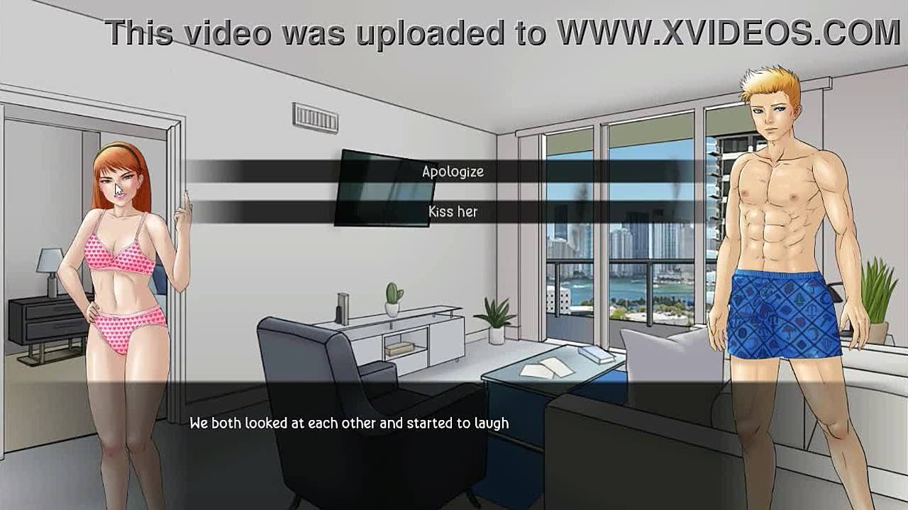 Exploring my new family in this game with redhead and brunette characters featuring small tits and big ass
