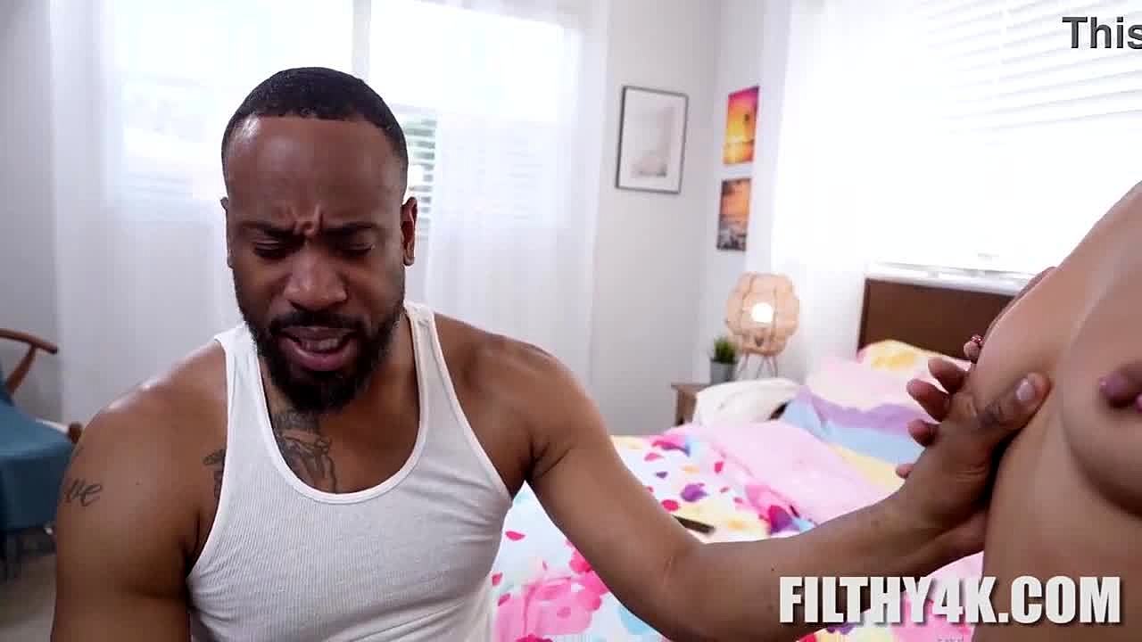 busty ebony teen feels guilty after step-dad's scolding over mess