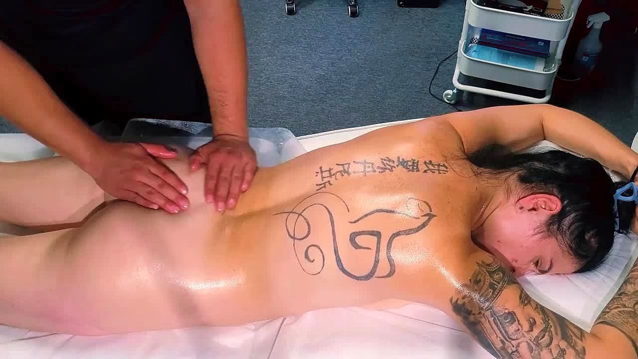 Male masseur gives massage to tattoo girl but she wanted more and he gave it