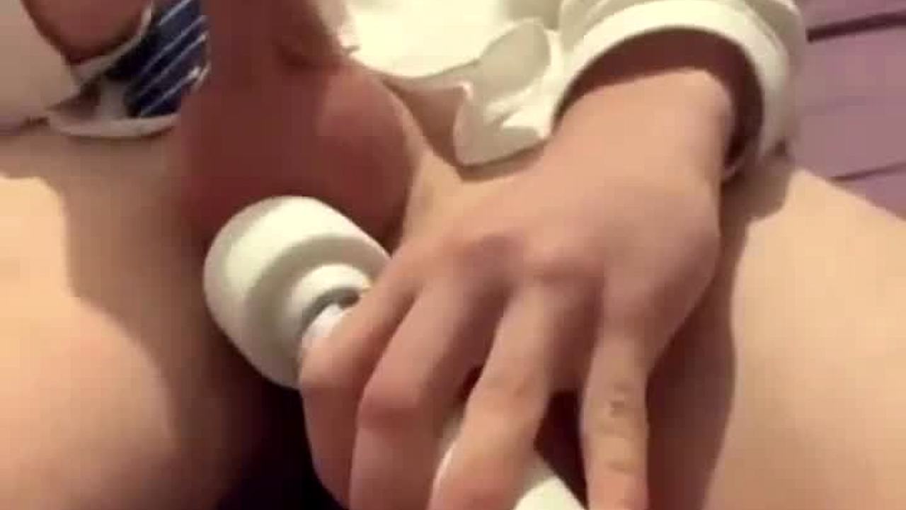 She grabs her magic wand and teases herself slowly on the bed