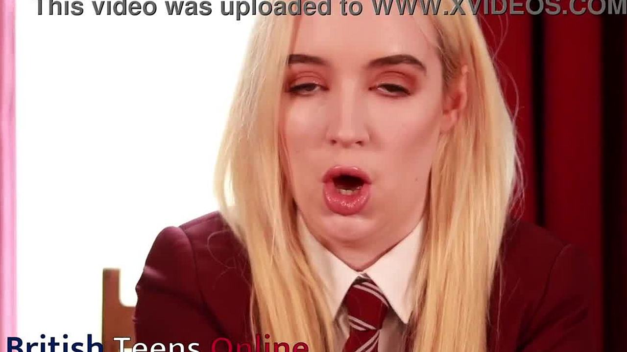 horny british student masturbates in uniform cums with toys