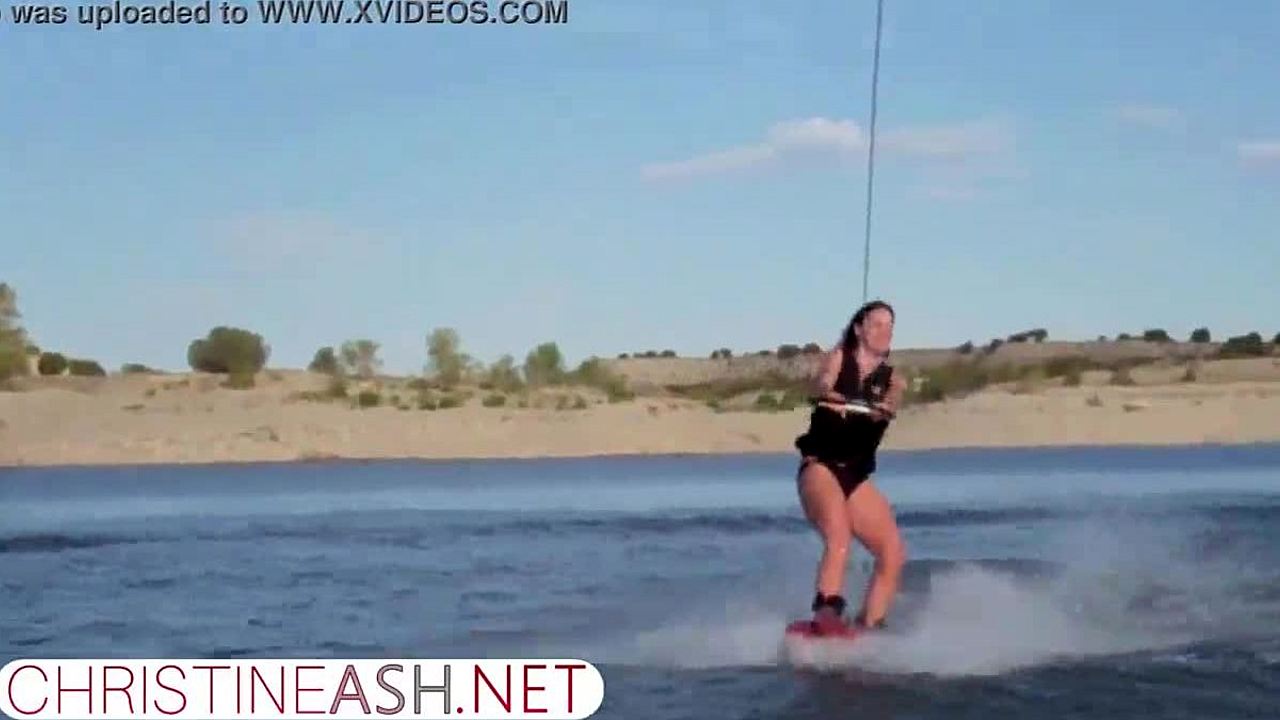 Christine Ash waterskis in the USA with big tits