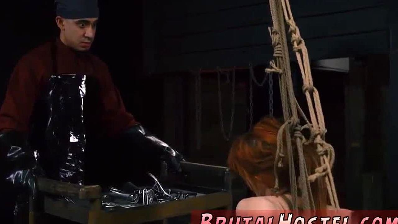 redhead submissive bound and punished hard in rough garage domination.