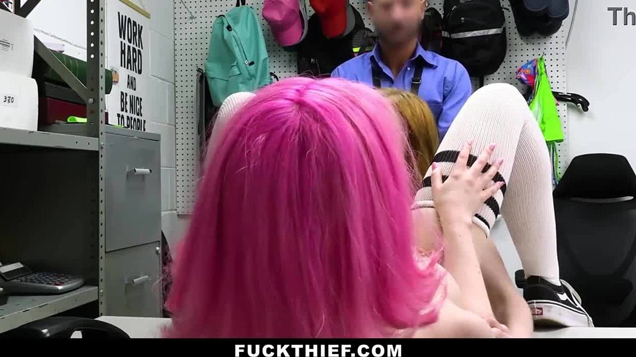 Loss prevention officer recovers stolen lipstick from teen 18+ and punishes her bent over in office