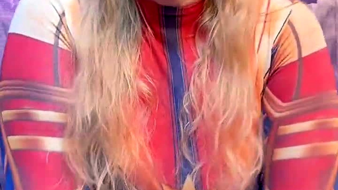 Captain Marvel bounces on a huge ebony dildo in cowgirl position 😈