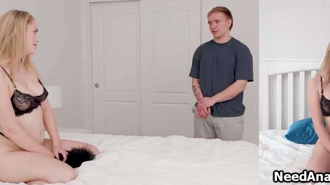 Nevlastná sestra dráždi nevlastného brata s veľkým kurcom na gauči znovu. Onanujú si navzájom až do vytrysknutia a orgazmu.