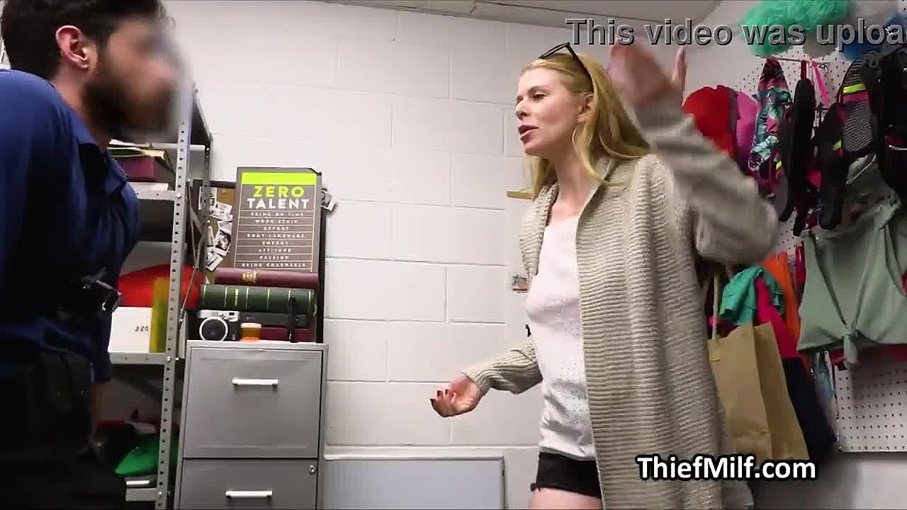 Tiny blonde shoplifter caught by mall officer and stripped for questioning. What’s her next move?