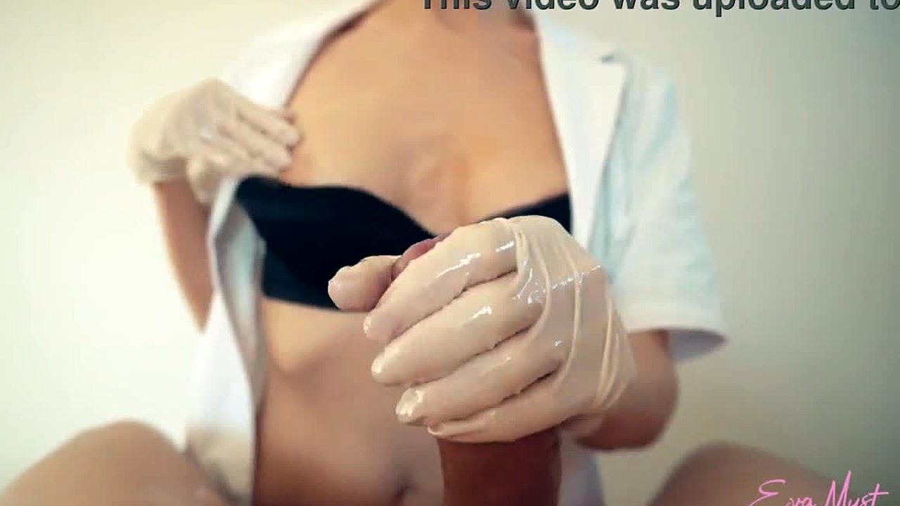 This sexy nurse eva myst gives a professional handjob with mask, gloves, and oil.