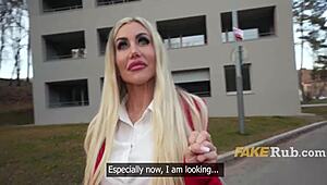 blonde tgirl's huge tits blasted with hot sticky jizz