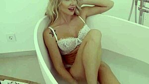 alternative shemale beauty wanks off solo in lingerie close-up.